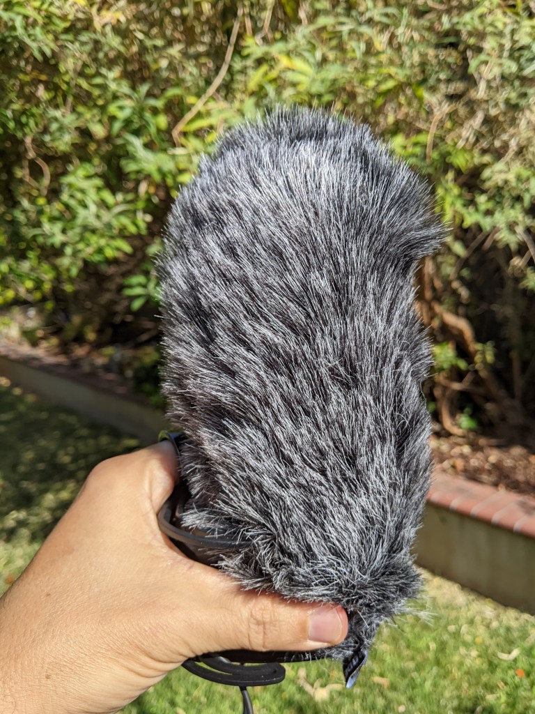 - Use a windscreen or a pop filter, even if indoors. My preference is a windscreen – it’s cheaper, takes less space. But doesn’t “look as cool”. But this is audio, so I don’t care.